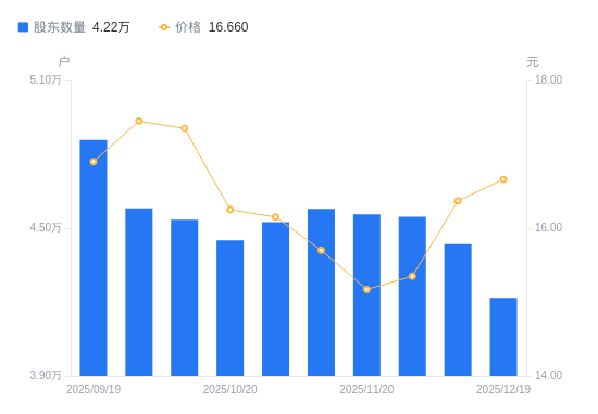 近一年(2024年12月20日至2025年12月19日),博实股份A股股东户数从3.91万户,并环绕系列产物供给系统处理方案和相关增值办事。从停业务收入形成为:固体物料后处能制制配备57.65%,区间股价下跌0.77%。运维、售后类工业办事24.15%,